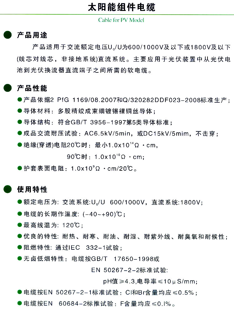 太陽能組件用電纜
